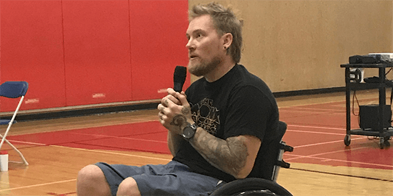 ICBC road safety speaker, Kevin Brooks, shares his story of how one decision at 21 years old changed his life. After a night of partying, Kevin drove impaired with his best friend as a passenger. He lost control of the vehicle and crashed. Kevin was paralyzed from the crash and his friend was killed. Kevin bravely shares the consequences he's faced since the crash to show young people the very real life and traumatic consequences that can occur from making a bad decision.
