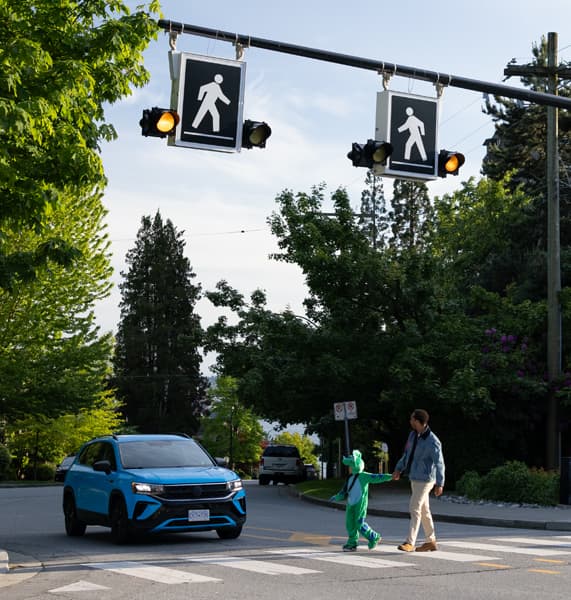 Pictured: ICBC partnered with the City of North Vancouver in 2023 on enhancements to this rapid flashing beacon crosswalk at St George’s and 10th to enhance visibility and pedestrian safety.