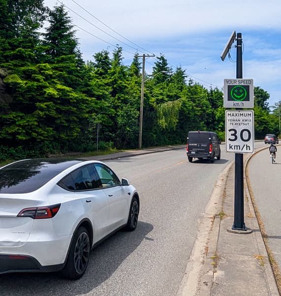 Pictured: We partnered with West Vancouver in 2019 to install speed reader boards to raise awareness of local street speed limits, monitor speeds and calm traffic in the community.